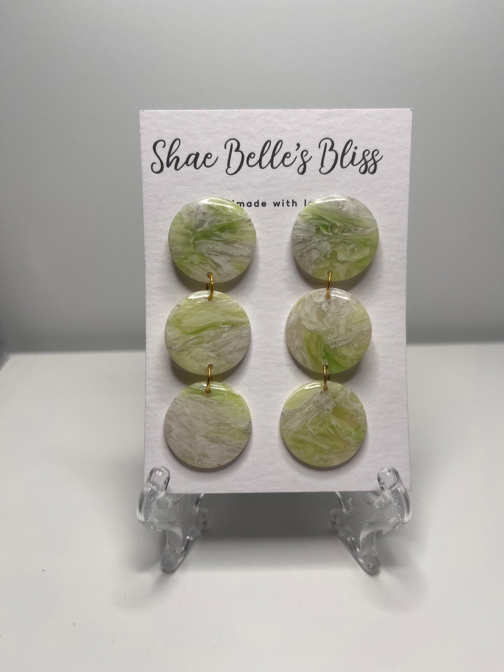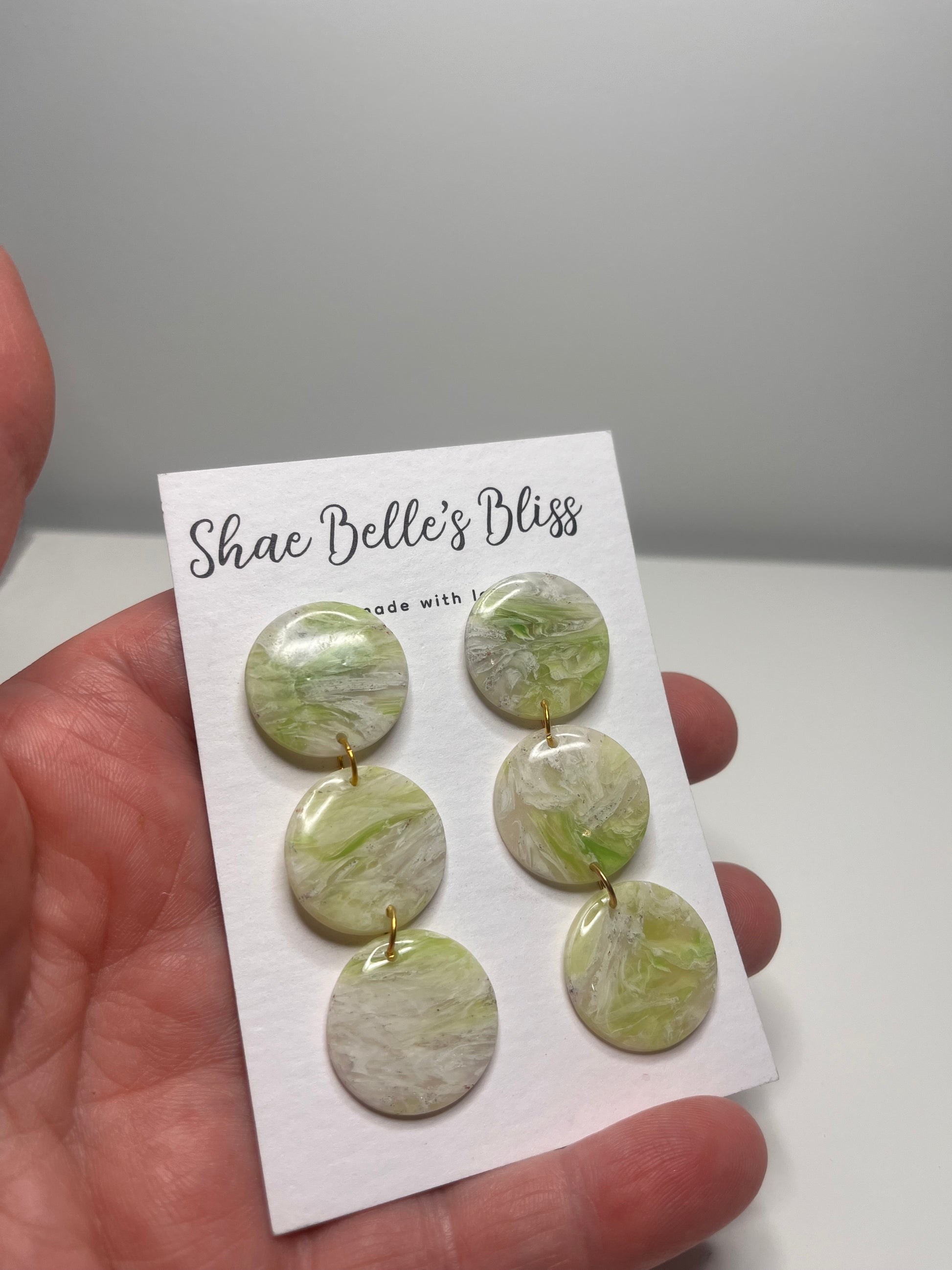 Polymer clay with a resin seal, approx 6cm length, surgical steel posts.