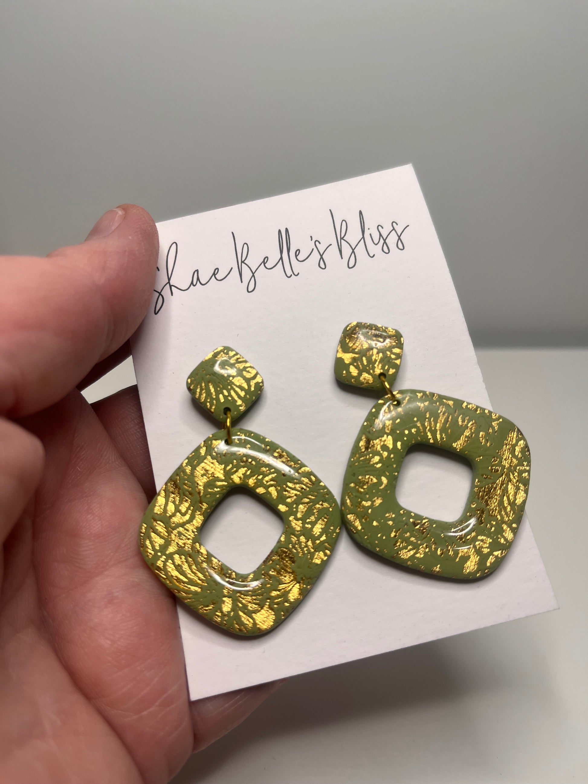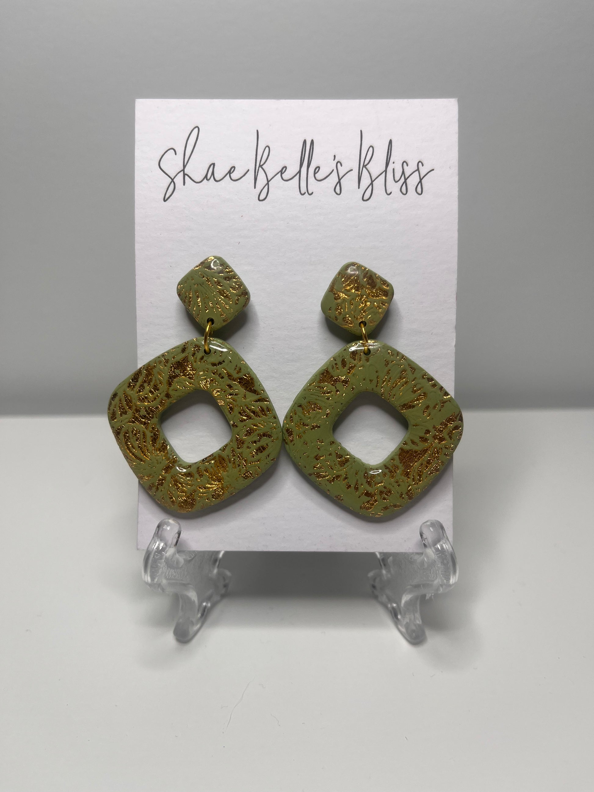Emi Square Dangle - Khaki & Gold