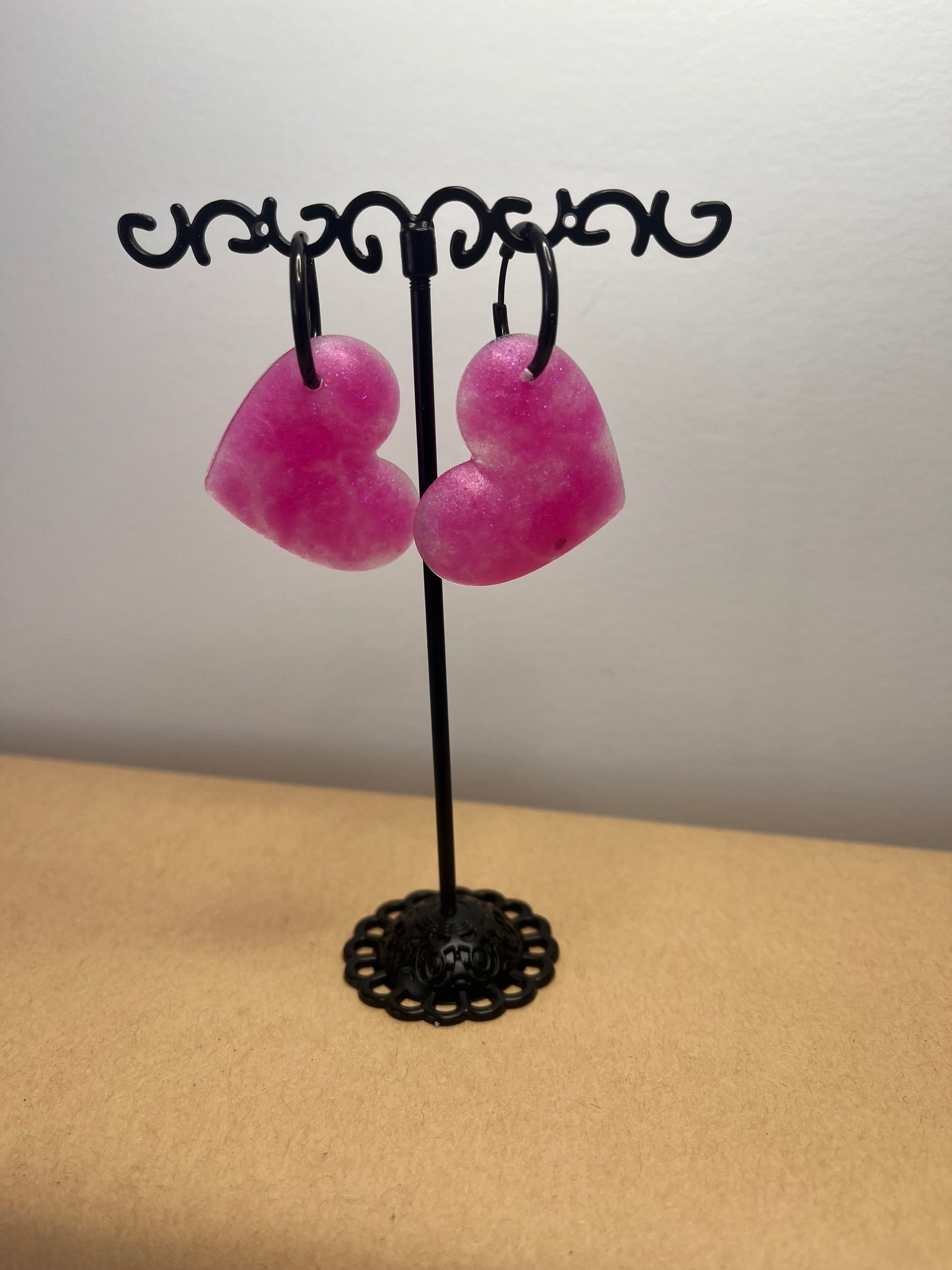 Large heart Huggies, 4cm approx with a black Huggie ring