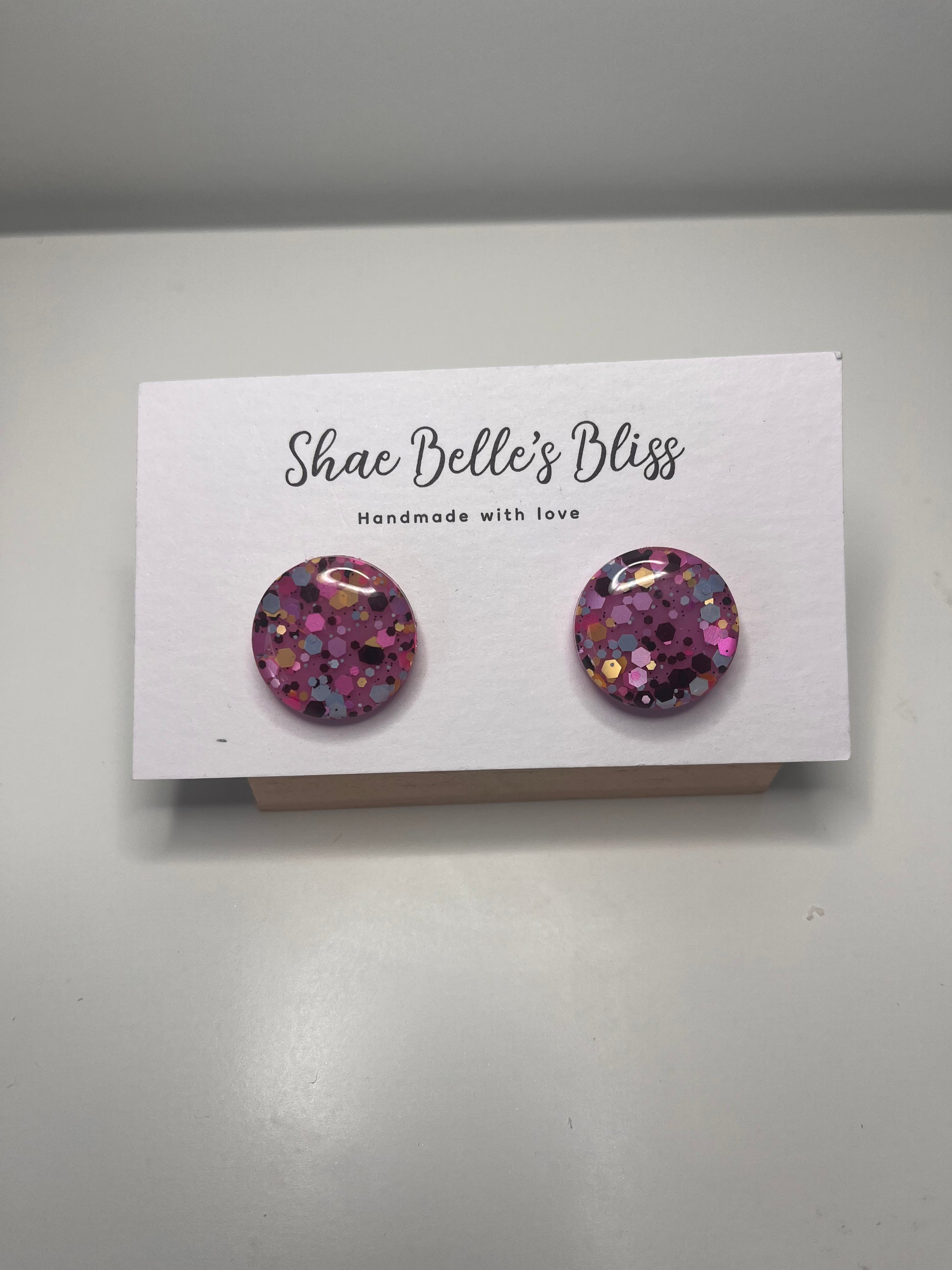 Hot pink, blue and black glitter studs, 2cm width, surgical steel posts